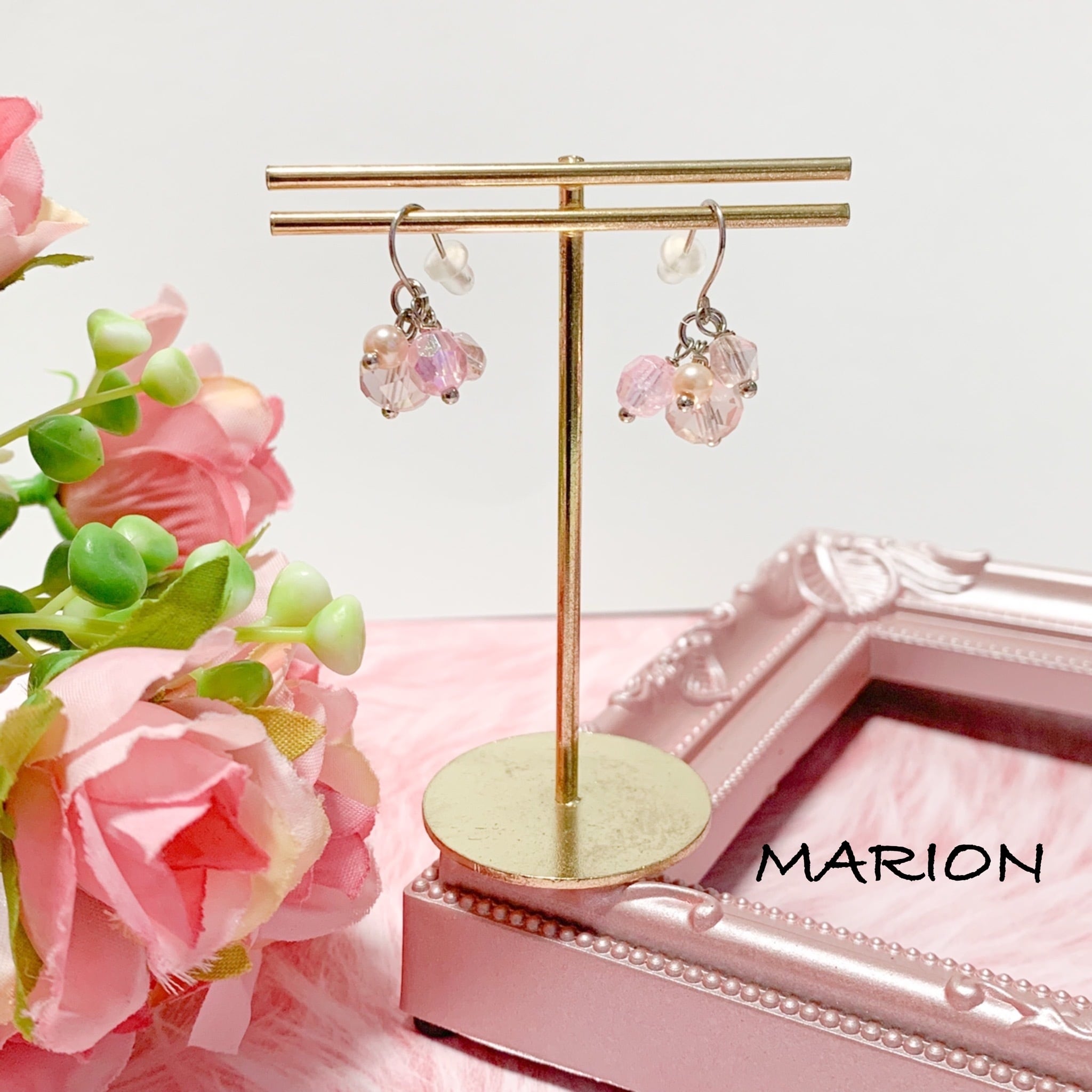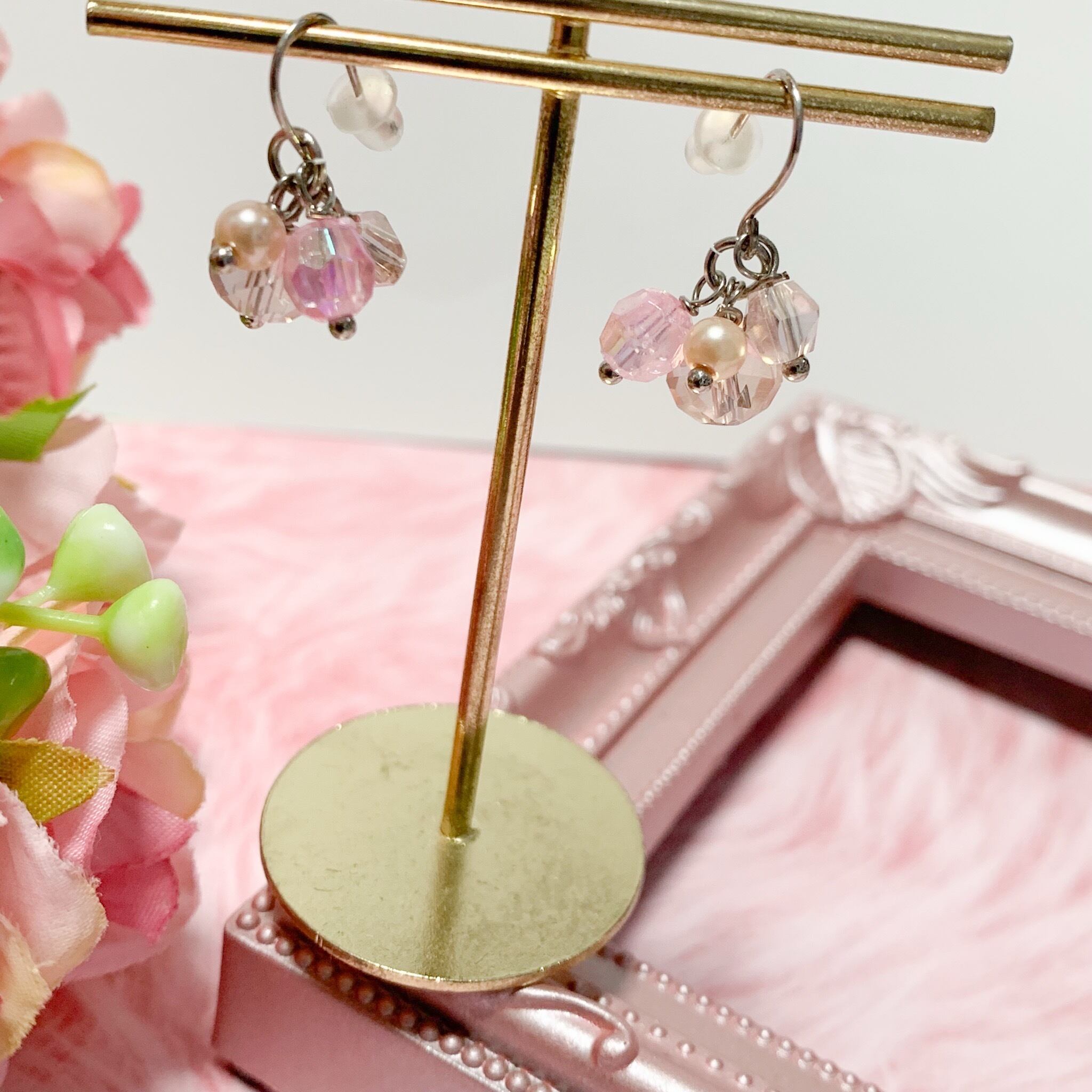 ピアス ハンドメイド ニッケルフリー ステンレス サージカルステンレス イヤリング 可愛いピアス 揺れるピアス パール ピンク パールピアス