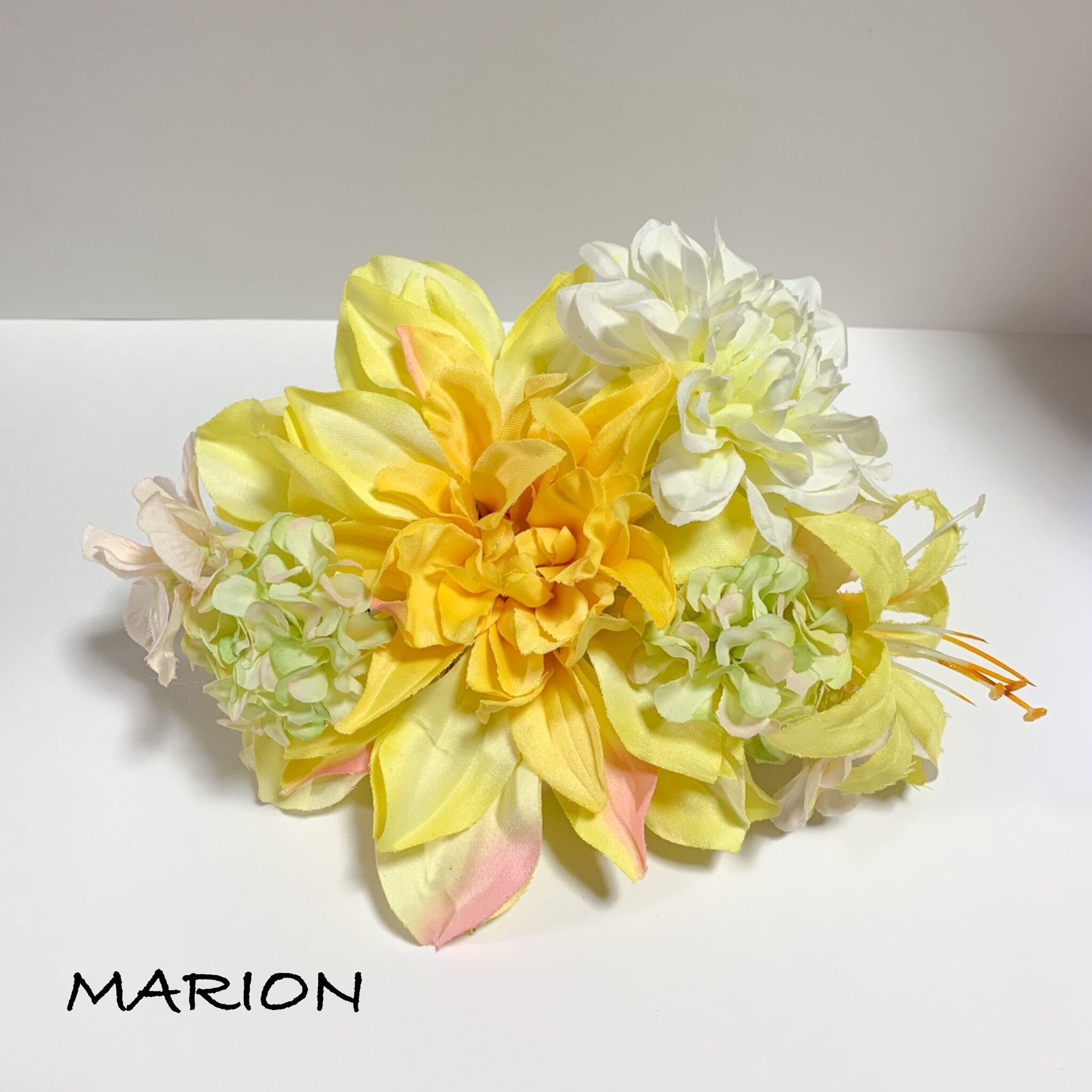 イエロー系アーティフィシャルフラワーヘアアクセサリーになります。