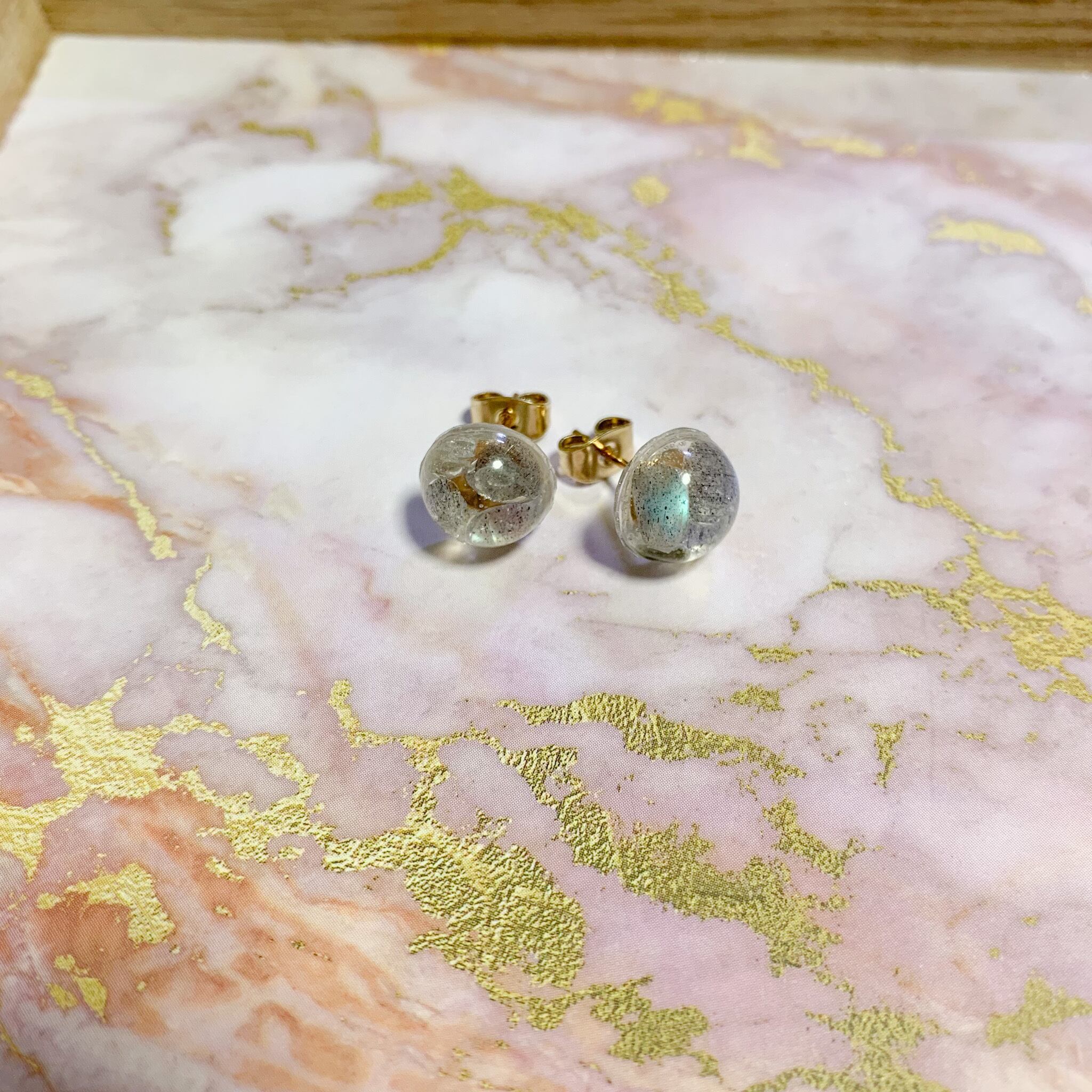 天然石、ラブラドライトを使ったピアスです(*^^*)