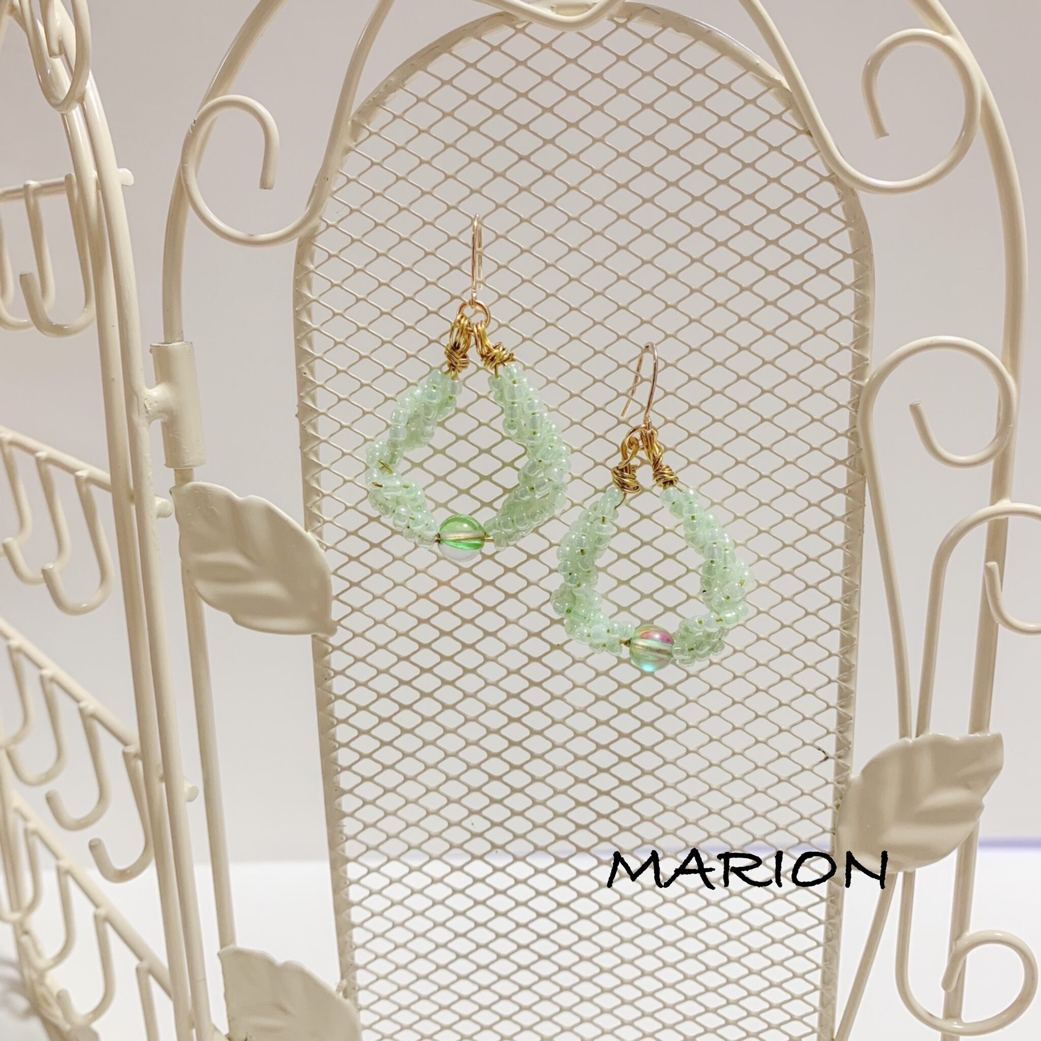 ピアス イヤリング ネジ式イヤリング サージカルステンレス 1点物 ノンホールピアス 他人と被らない 可愛い パーツ交換 可愛いアクセサリー 可愛いピアス 揺れるピアス ビーズ オーロラ 夢かわいい 夢かわ シャーベットカラー ライトグリーン