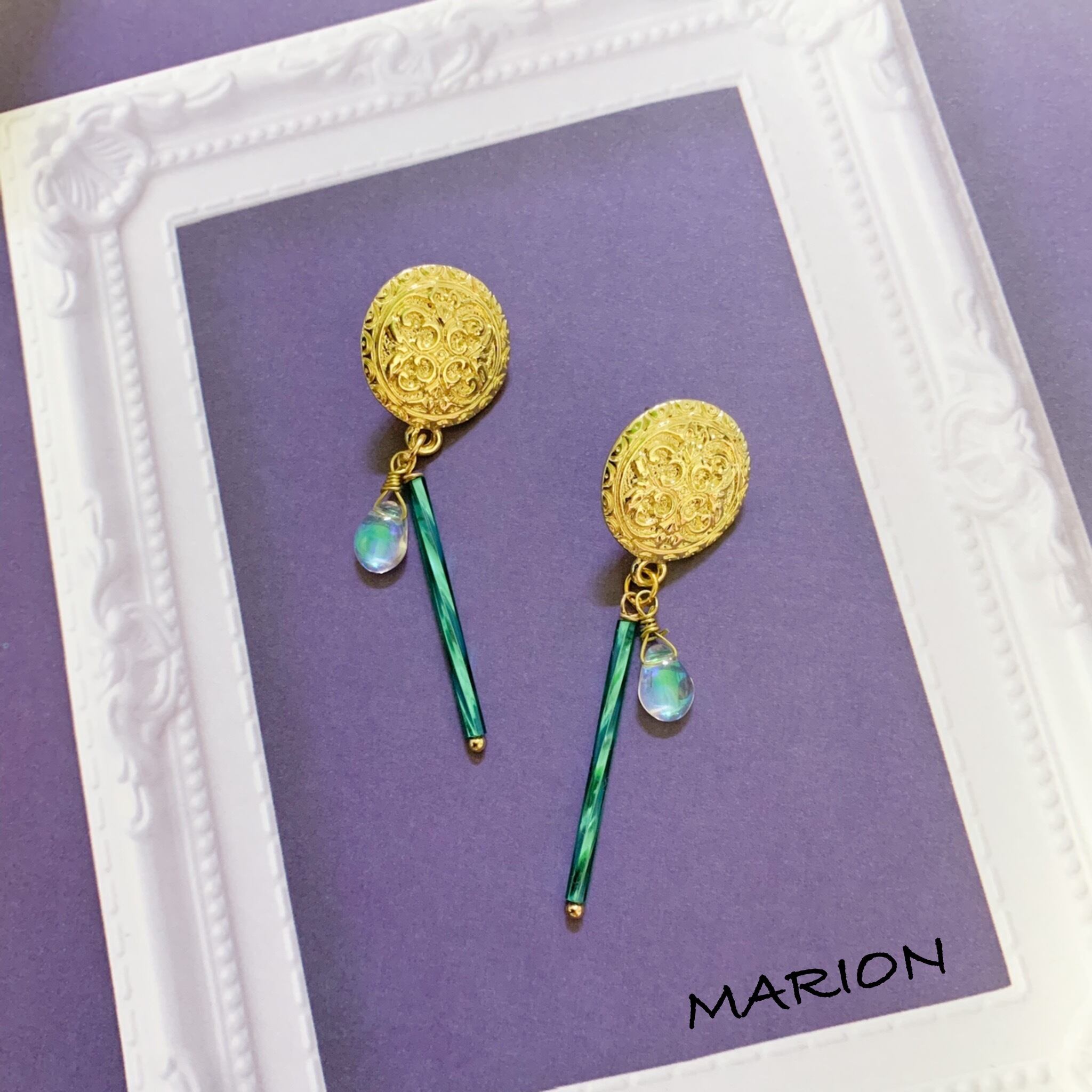 1点物 可愛い 可愛いアクセサリー 可愛いピアス ピアス 個性的 個性的なピアス グリーン エメラルドグリーン チェコガラス ガラス