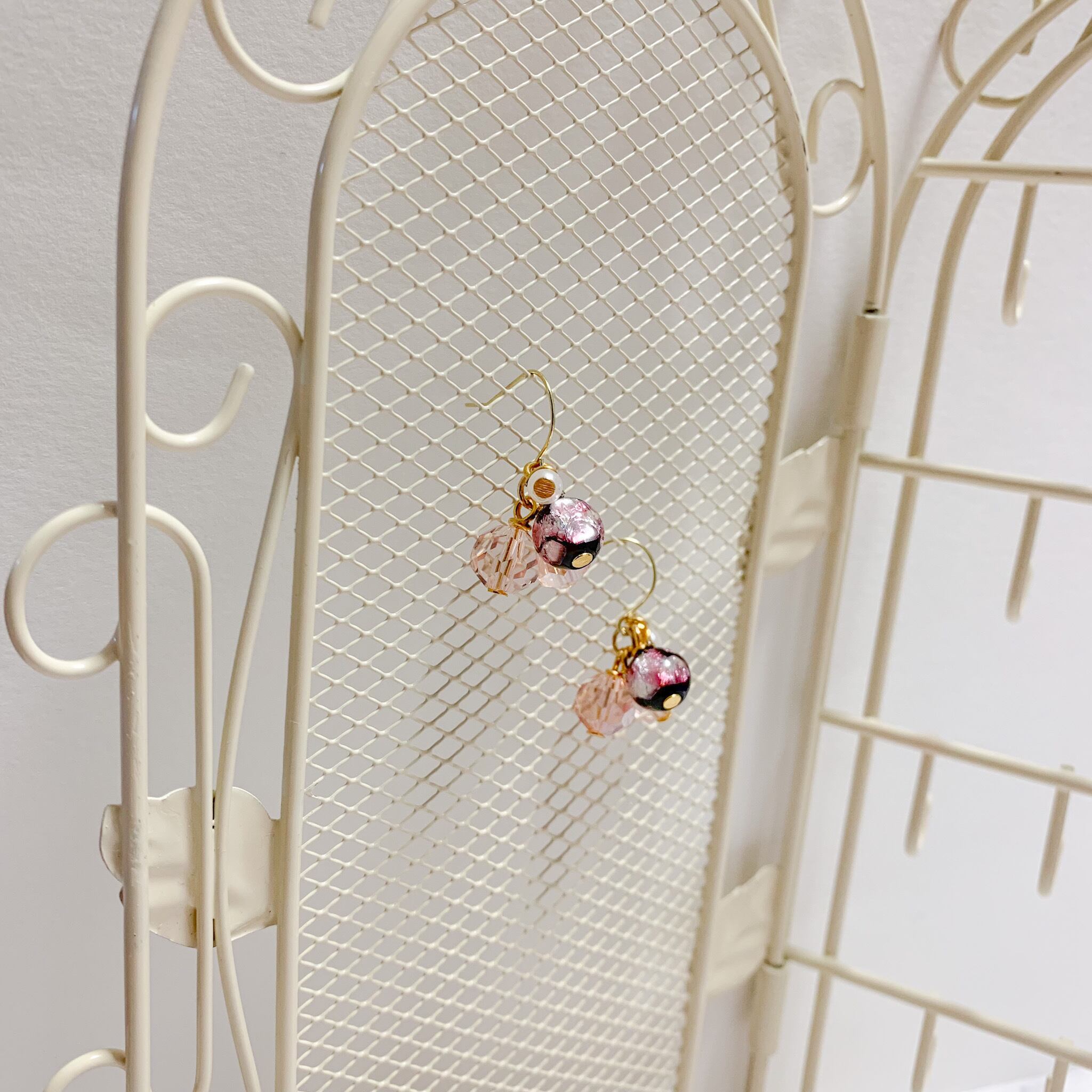 ピアス イヤリング ネジ式イヤリング サージカルステンレス 1点物 ノンホールピアス 他人と被らない 可愛い パーツ交換 可愛いアクセサリー 可愛いピアス 揺れるピアス ゴールド ホタルガラス ピンク ペールカラー 春ピアス 桜
