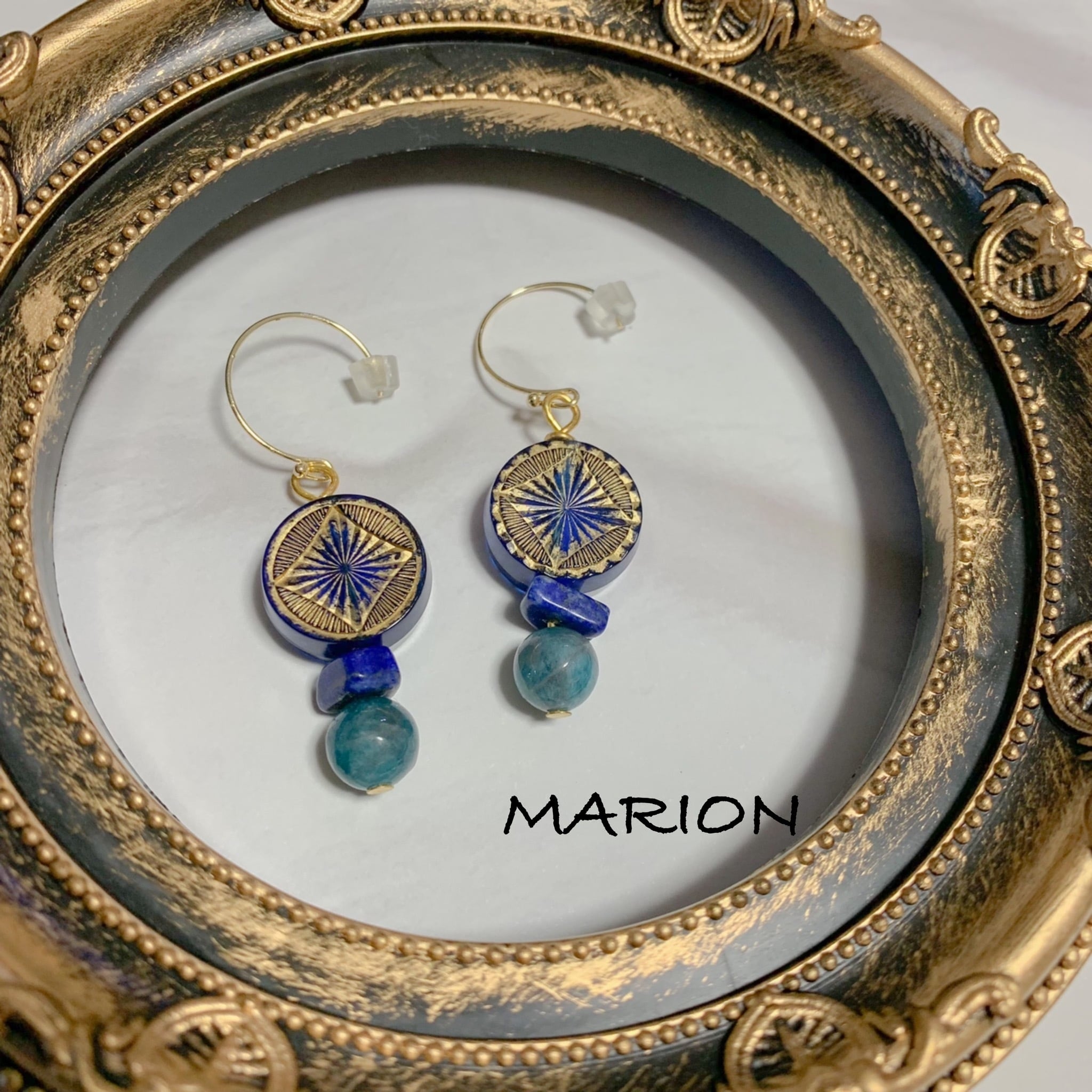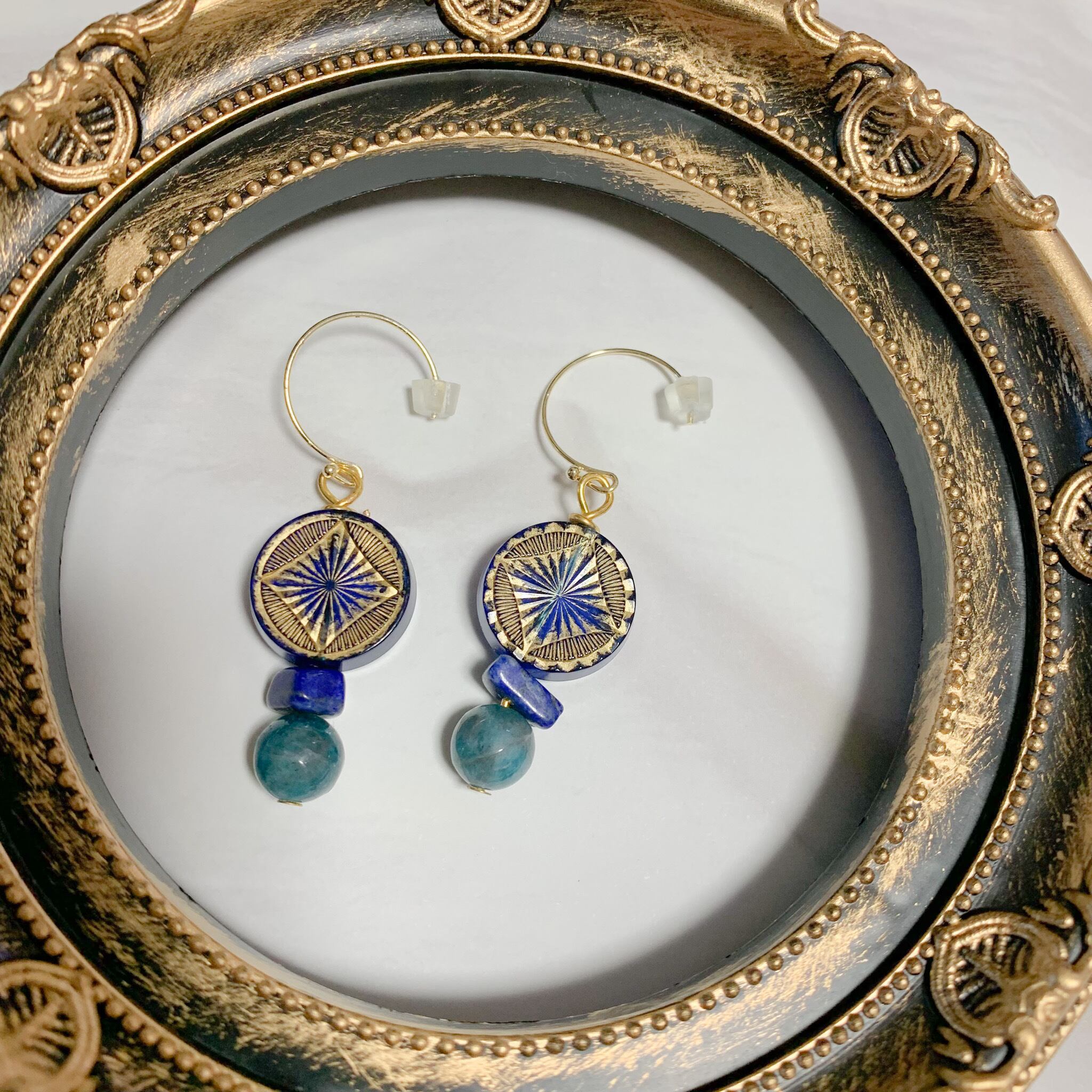 他アプリにてSOLDOUT! アパタイト、ラピスラズリとチェコガラスのピアス*サージカルステンレスやイヤリングへの変更可能