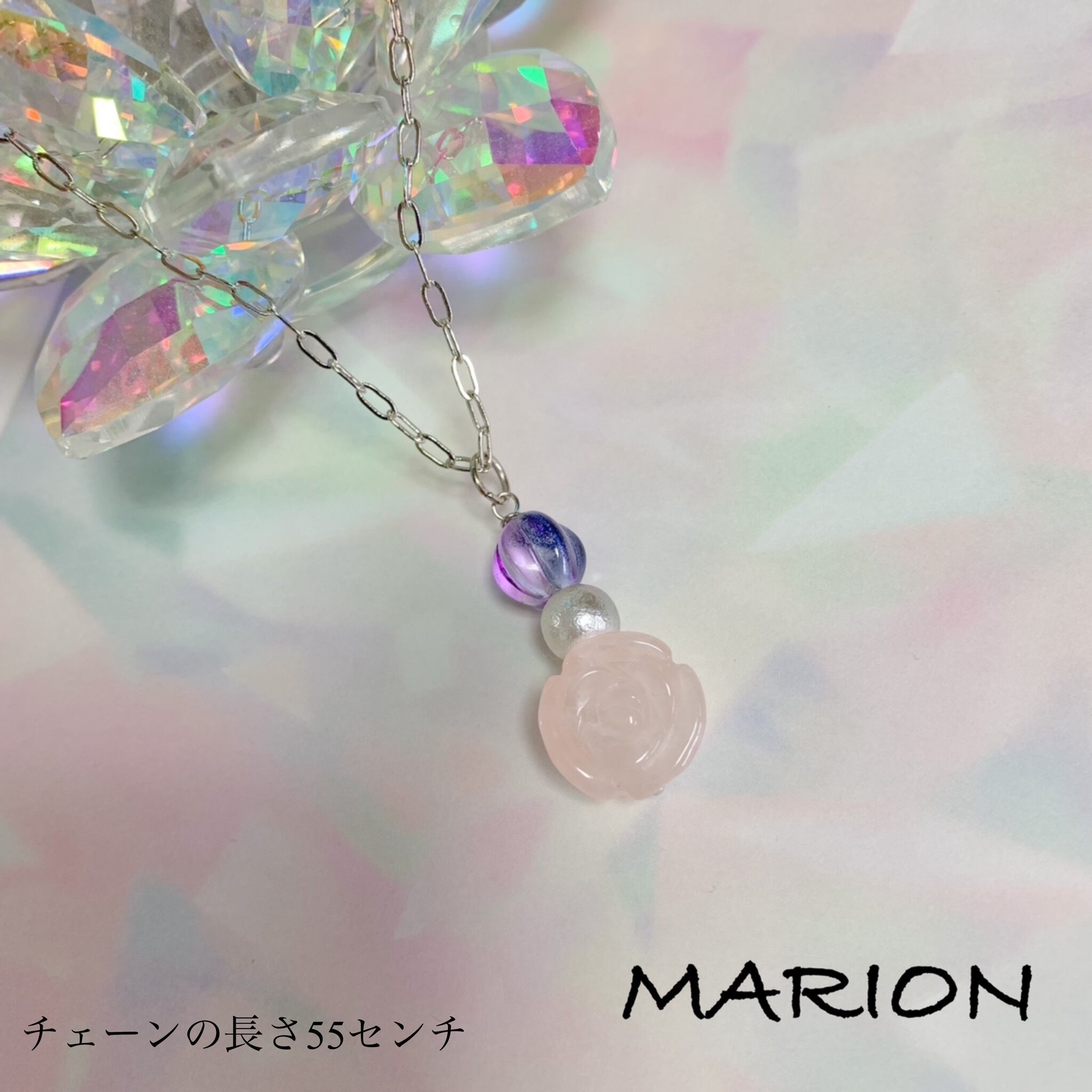 ネックレス ローズクォーツ 薔薇 天然石 10月誕生石 美容 健康 恋愛運 ローズクォーツのネックレス 薔薇のネックレス