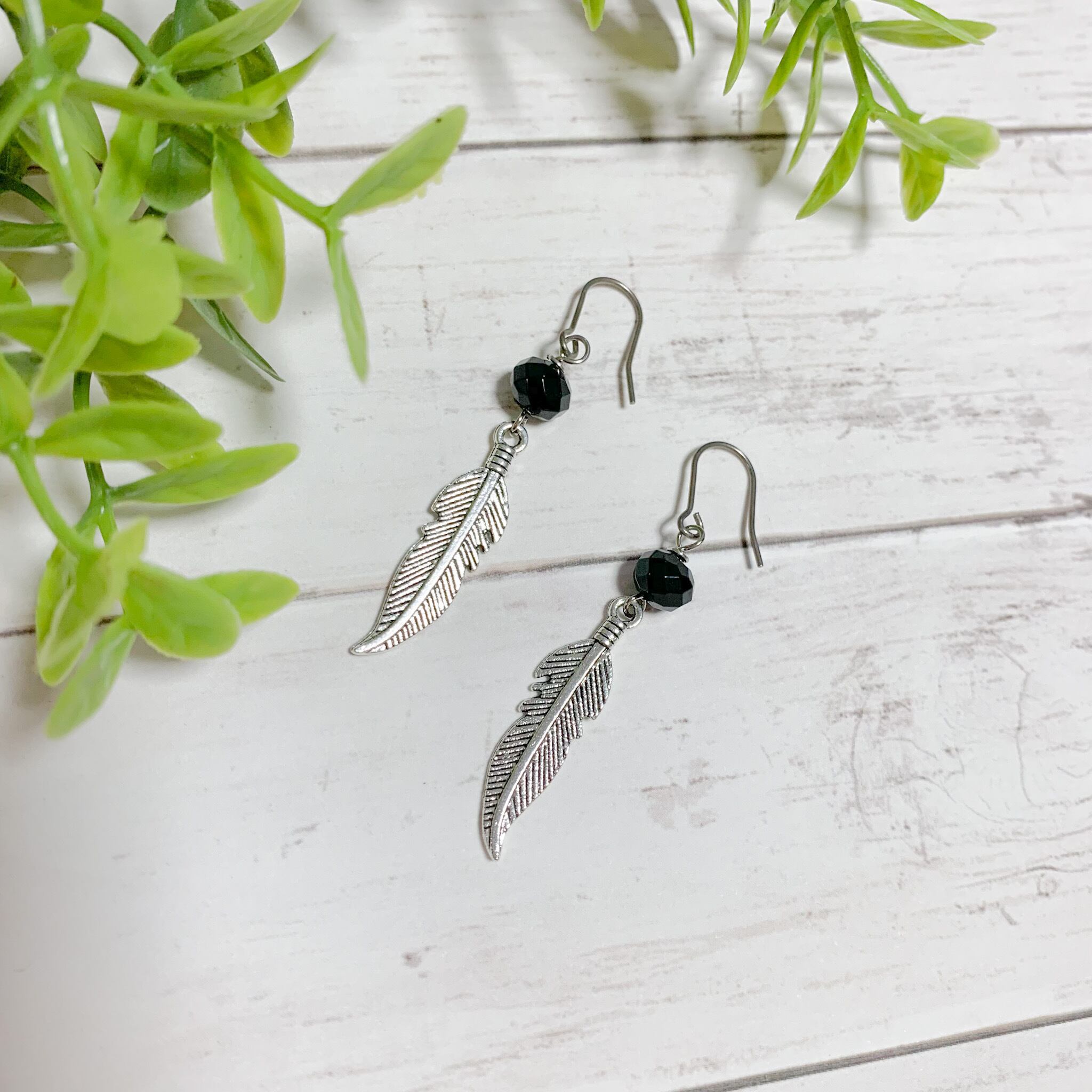 ピアス イヤリング ネジ式イヤリング サージカルステンレス 1点物 ノンホールピアス 他人と被らない 可愛い パーツ交換 可愛いアクセサリー 可愛いピアス 揺れるピアス フェザー 羽根 羽根ピアス
