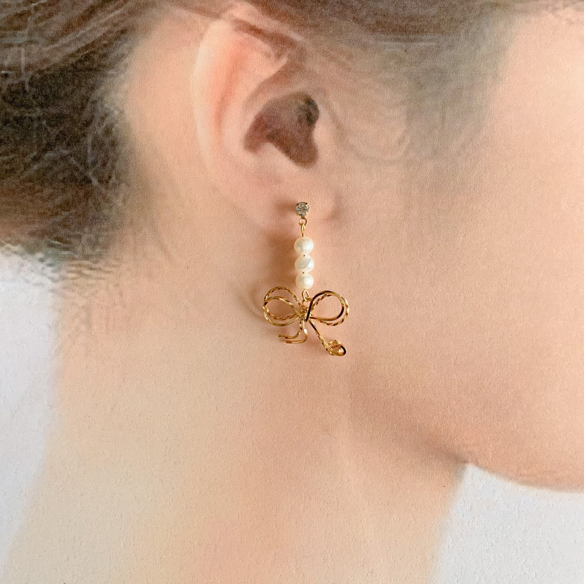 他アプリにてSOLDOUT!!淡水パールとリボンのピアス*サージカルステンレスやイヤリングへの変更可能