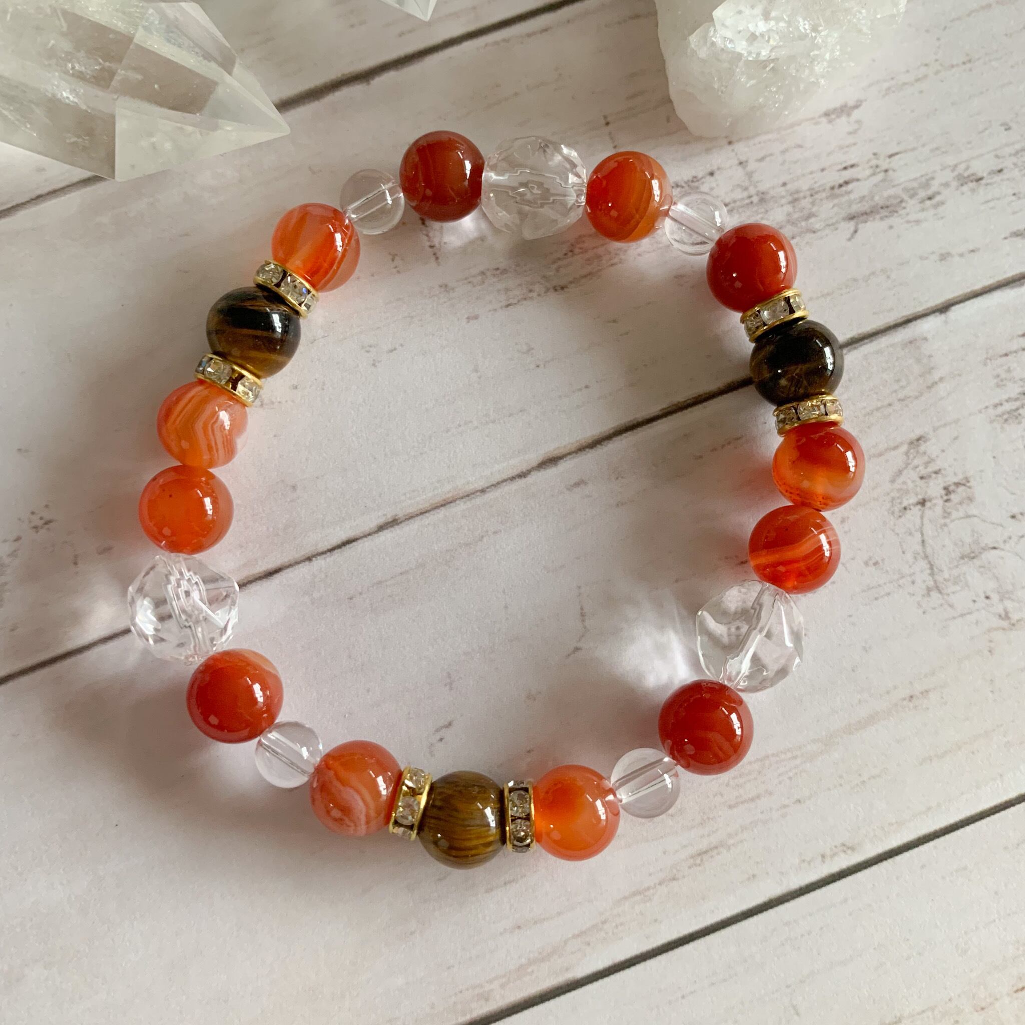 タイガーアイ、カーネリアン、水晶を使った天然石ブレスレットです。