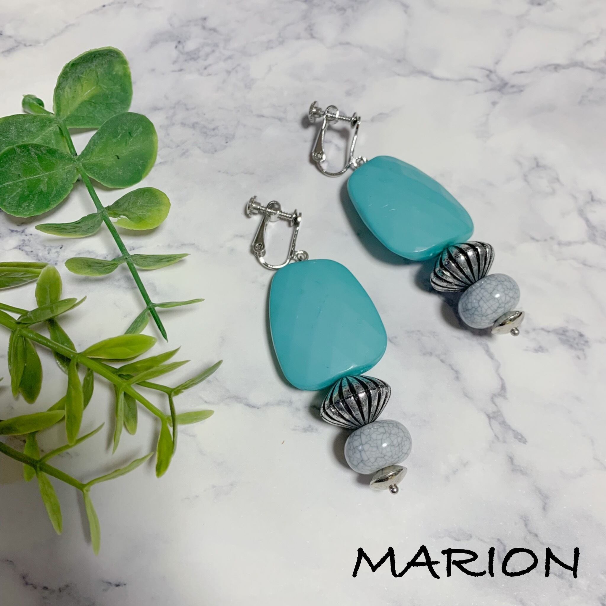 個性的アクセサリー ターコイズブルーアクセサリー アクセサリー ハンドメイド ハンドメイドアクセサリー ハンドメイドイヤリング 大ぶりイヤリング 個性的イヤリング ターコイズブルーイヤリング 夏イヤリング